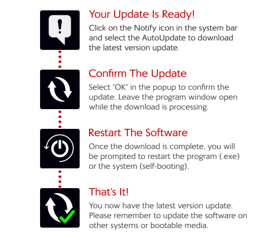 In order to enjoy this feature, please first download the update to HDClone 15.0.4 or HDShredder 8.0.1 from the Nanoways ESD. From this version onward, you can easily initiate future updates via the system bar. The AutoUpdate applet will then handle the download and installation automatically.
