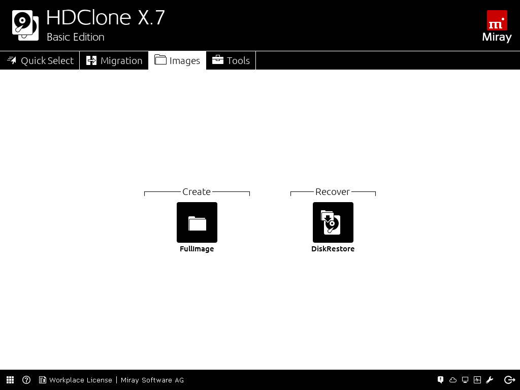 HDClone can be booted from CD/DVD and USB stick, even on SecureBoot systems, so you even can recover an image without a working operating system. With identical interfaces on both programs there is complete ease in switching between the self-booting version and the Windows program and supports USB and Bluetooth mice and keyboards.