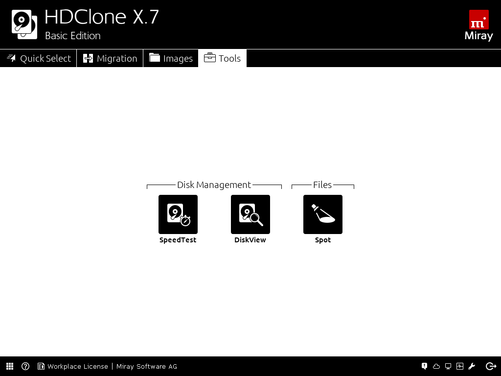 HDClone offers a self-booting version (HDClone/S) and a Windows application (HDClone/W). Both versions use the same user interface, so switching between the two is no problem.